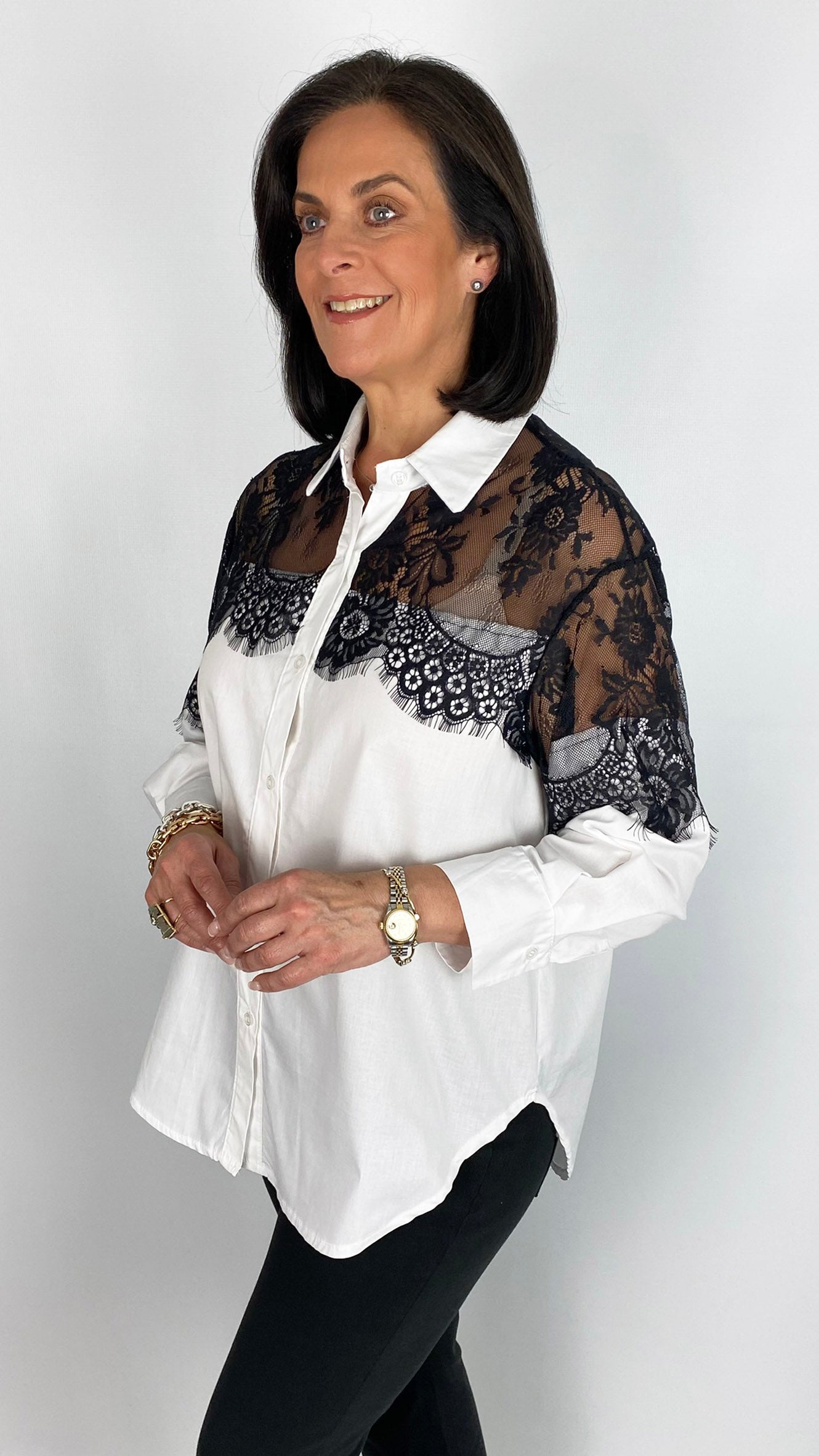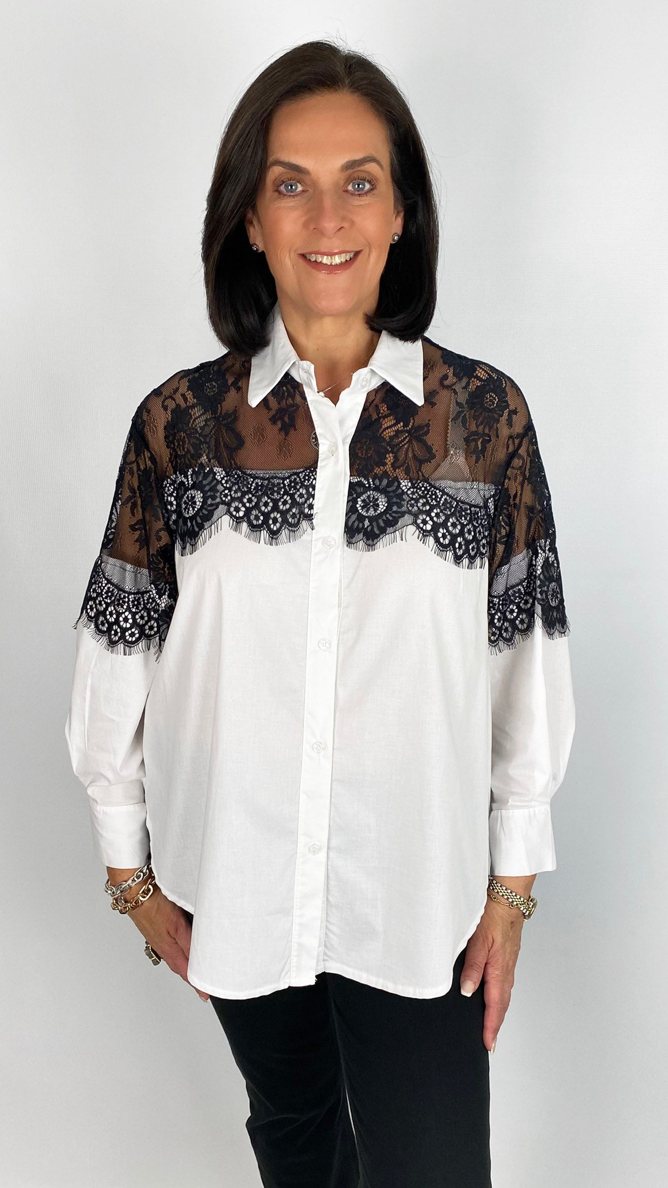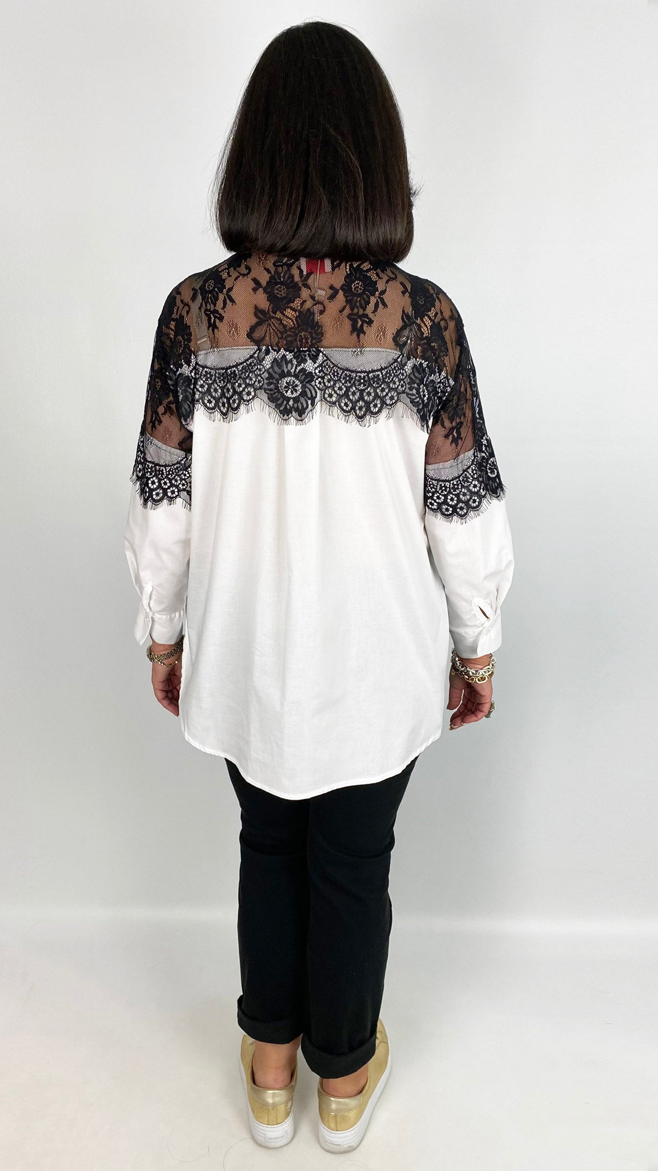 Lace shoulder classic shirt | White/Black | last 1s