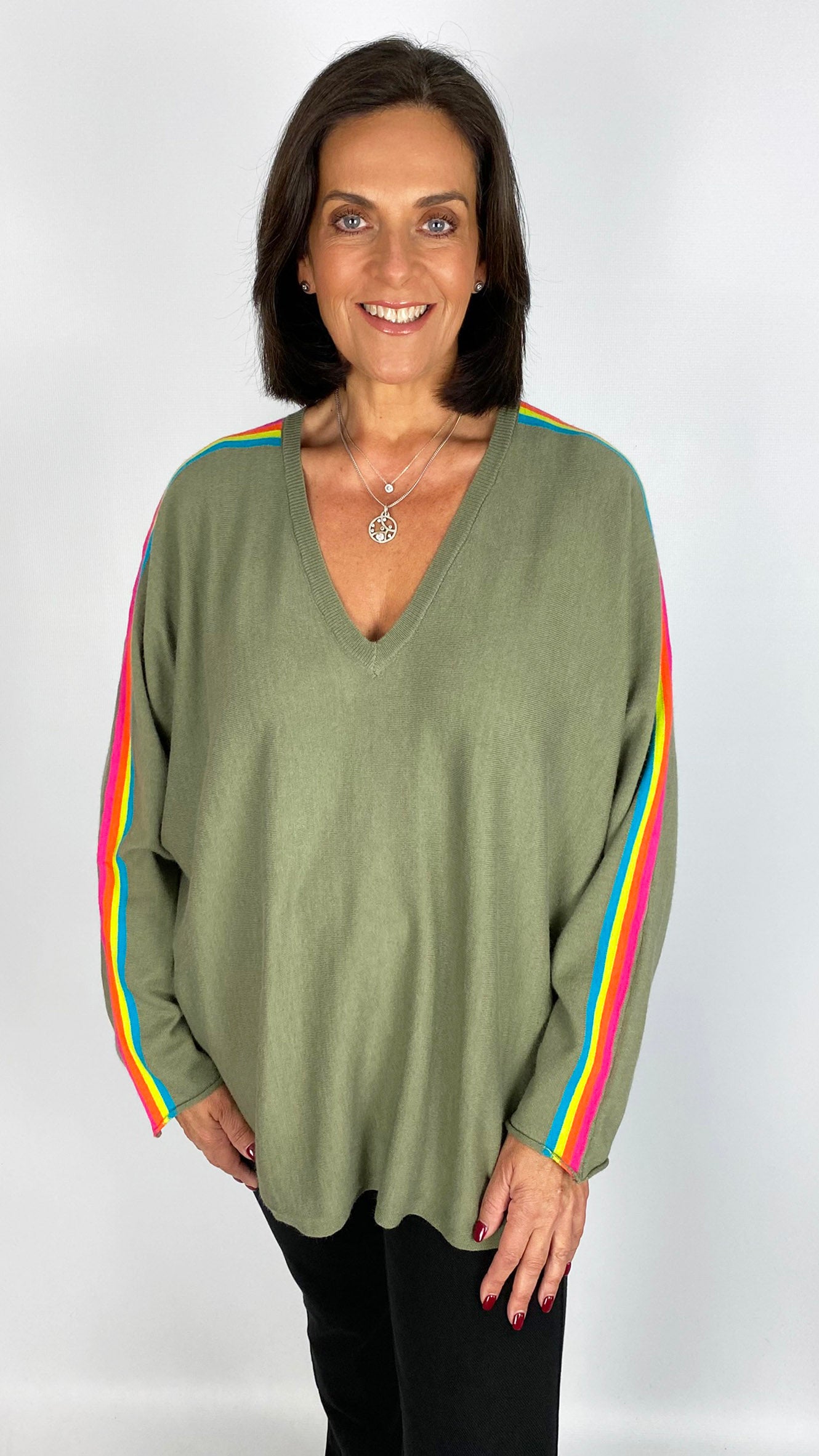 Neon stripe v-neck jumper | Khaki or Grey | last 1s