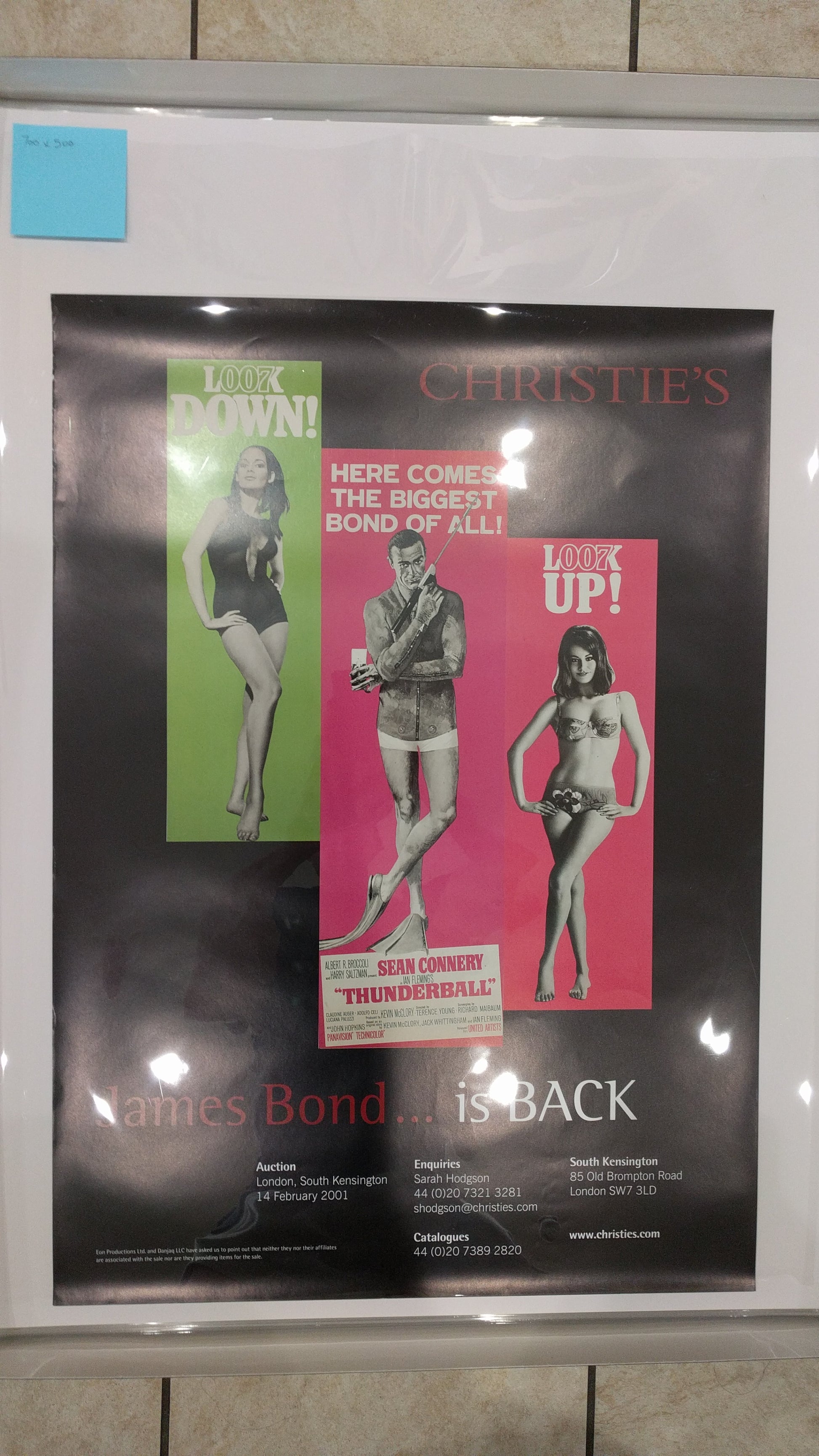 Original poster advertising the 2001 James Bond auction at Christies in London.