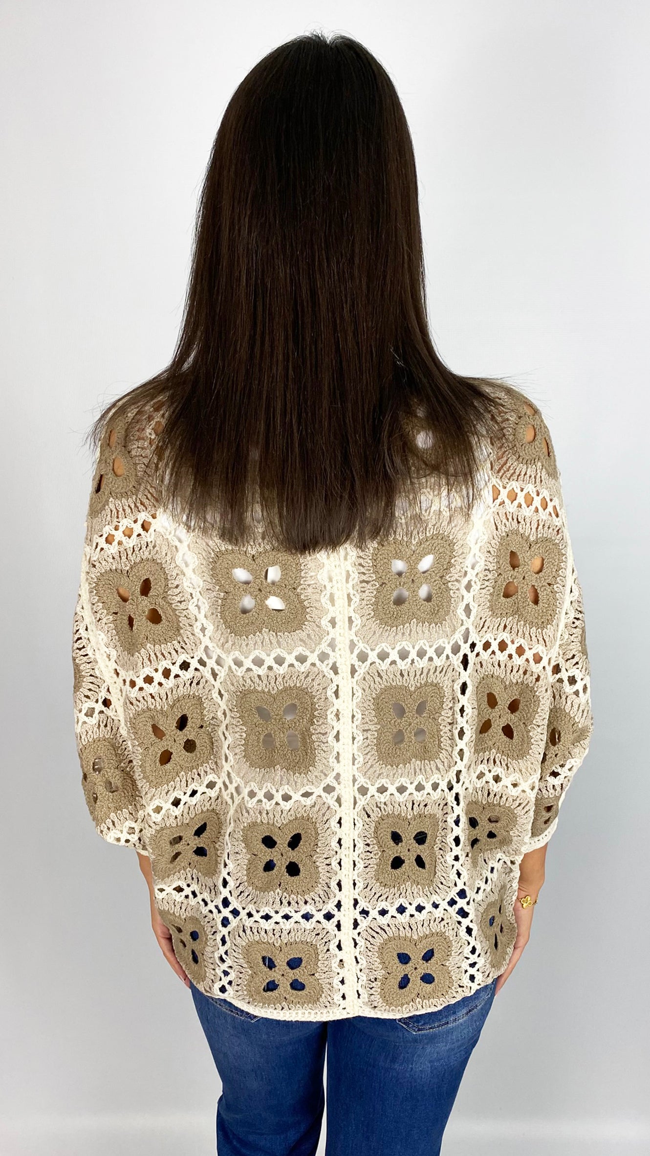 Crochet button-through batwing cardigan | Beige/Cream