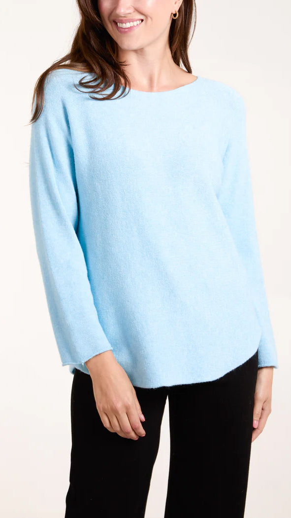 Indulge in luxury with our collection of curved hem round-neck jumpers. Available in 10 stylish colours, this jumper features a soft and comfortable fabric, making it the perfect addition to your wardrobe. Great to wear with skirts or trousers.