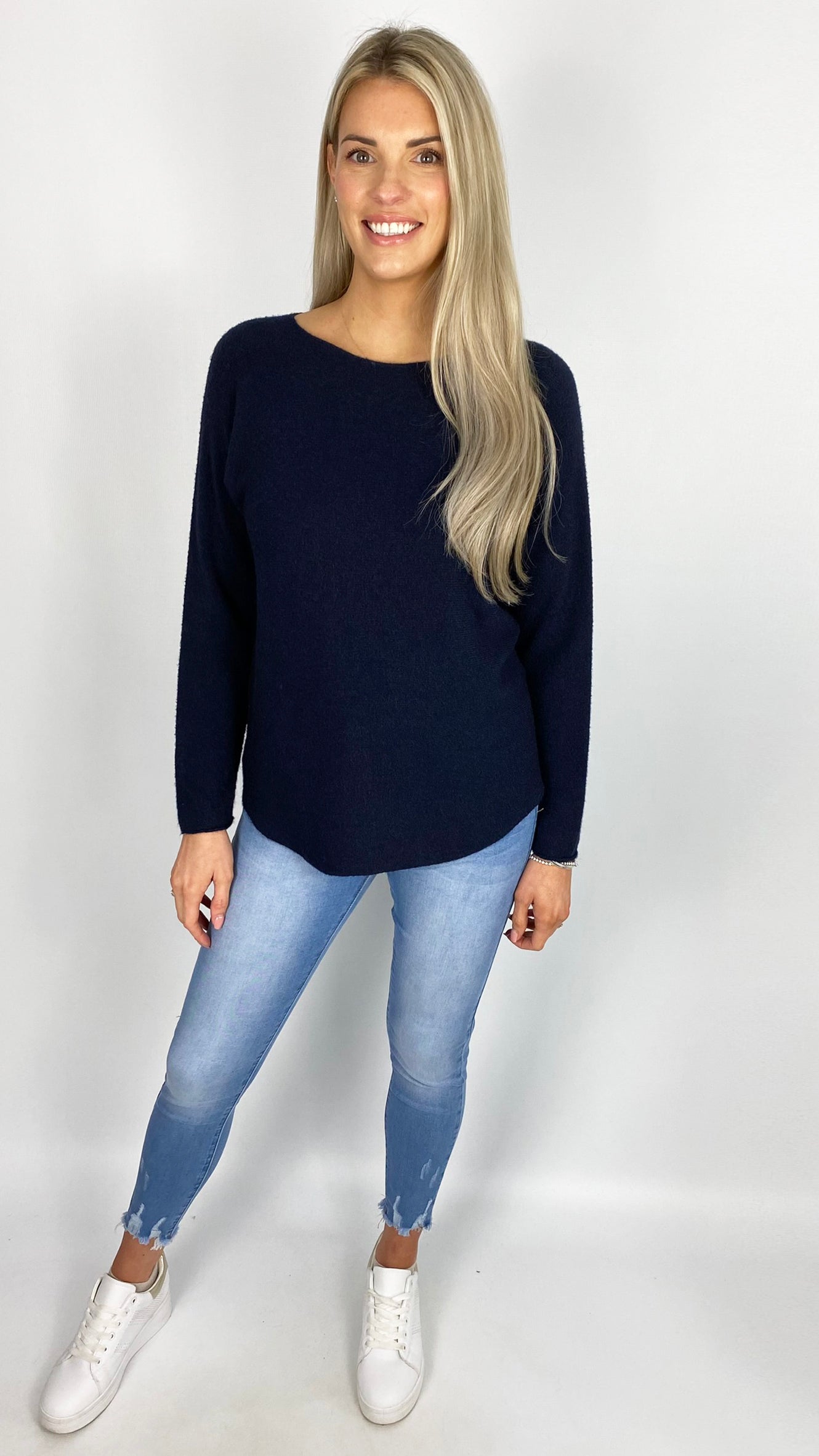Indulge in luxury with our collection of curved hem slash-neck jumpers. Available in 8 stylish colours, this jumper features a soft and comfortable fabric, making it the perfect addition to your wardrobe. Great to wear with skirts or trousers.