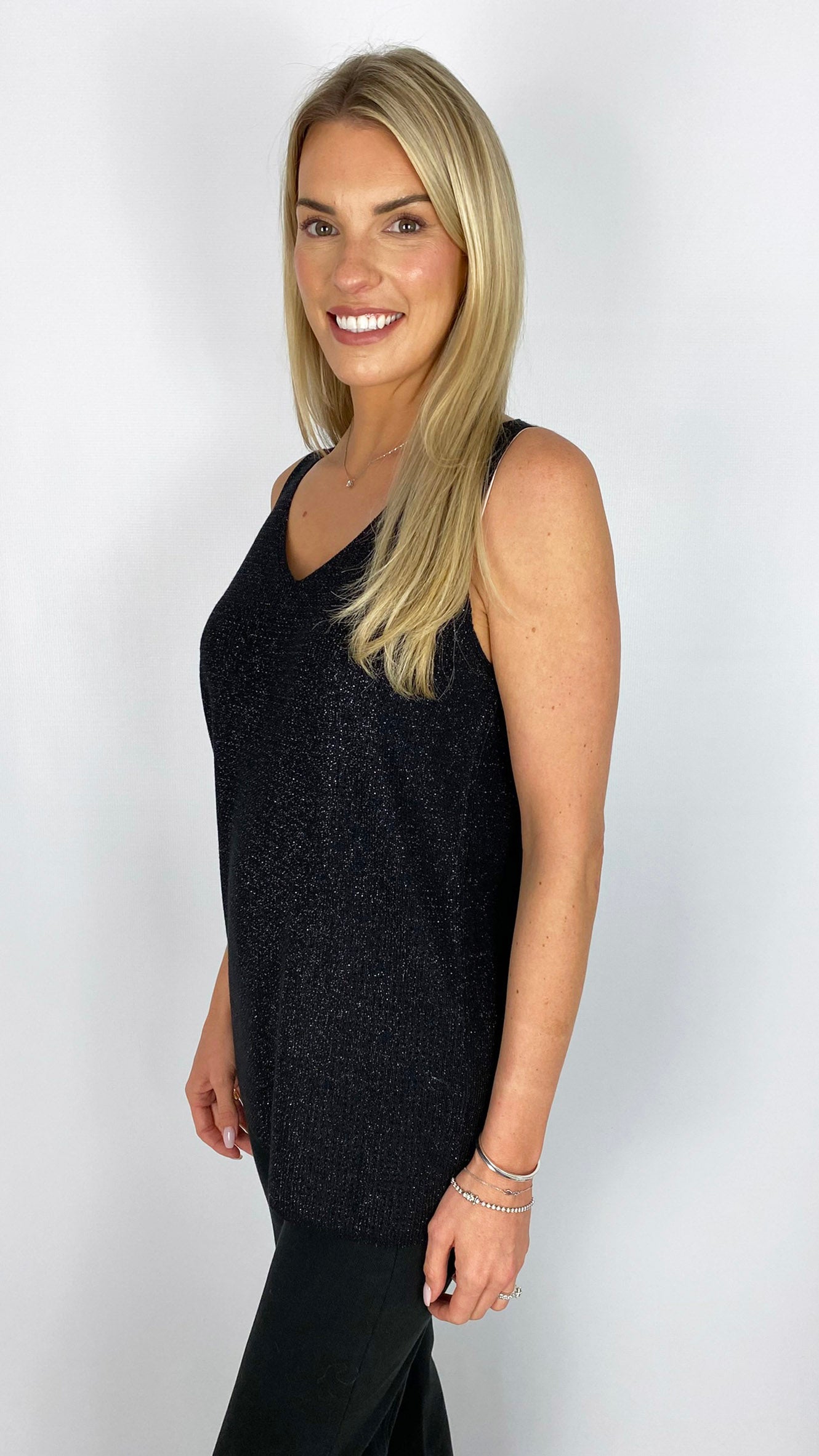 Lurex & studded v-neck sleeveless top | 2 Colours | by Malissa J