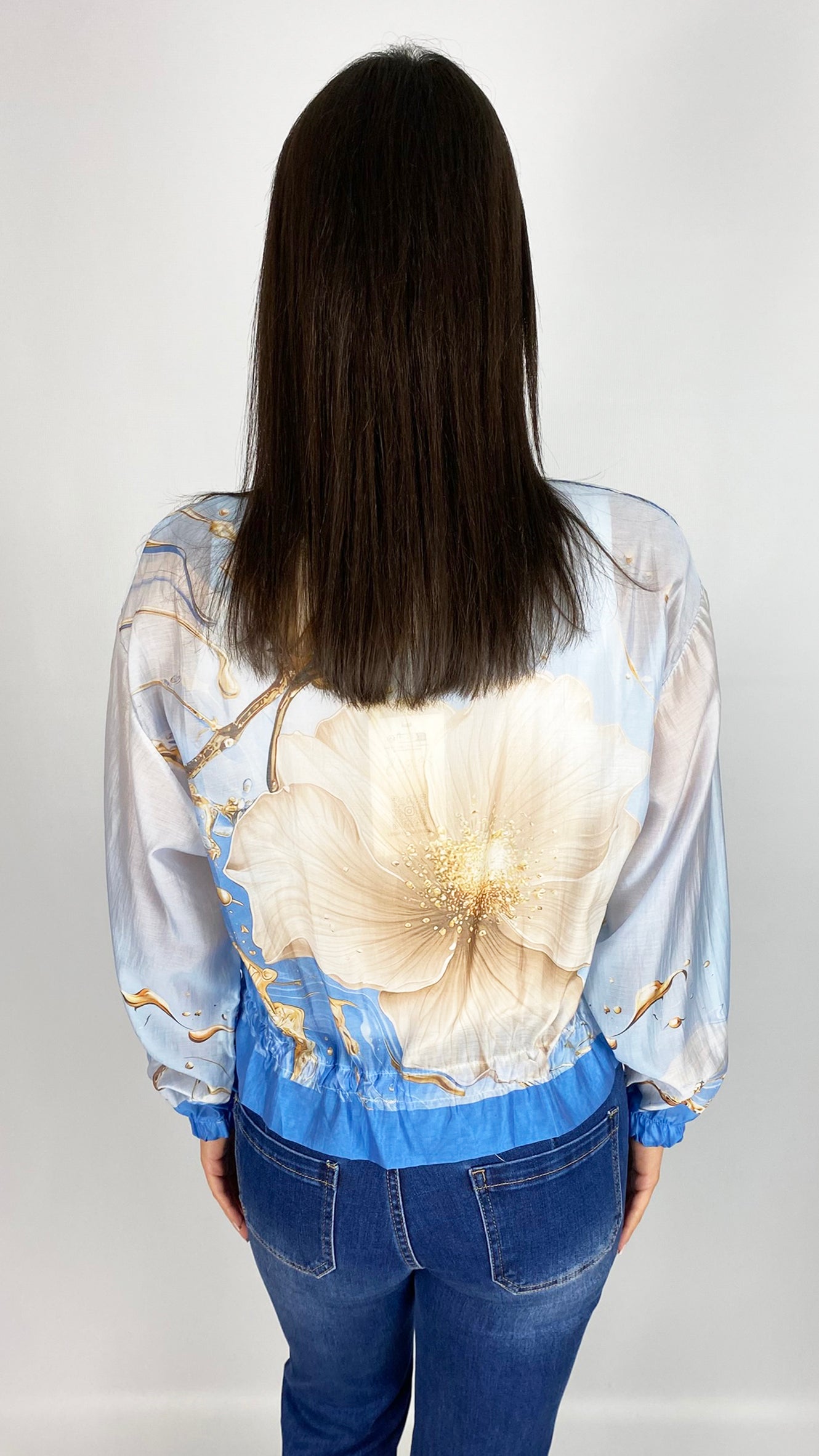 This contemporary bomber jacket merges modern functionality with refined aesthetics. The collarless design creates a streamlined silhouette, whilst the zip-through front offers effortless layering capability. Cuffed sleeves provide structure and a polished finish, and the adjustable drawstring hem allows you to customise the fit to your preference. The sheer print adds visual intrigue and texture, elevating the classic bomber style.